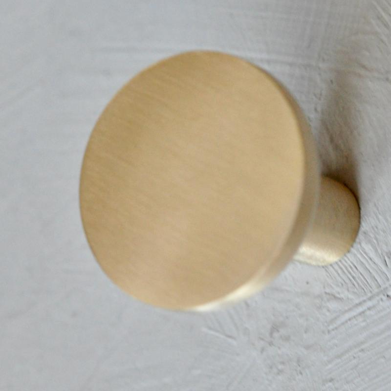 En fantastisk knopp med stilrent utseende och skönt grepp på baksidan. Diam ca 3 cm. Djup ca 3 cm. Tillverkad i blyfri mässing. Design: ExMez